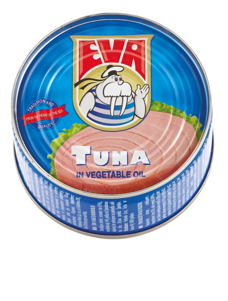 TUNA min. 70 %, rastlinsko olje min. 15 %, jedilna sol. Vsebuje RIBE in SOJO.