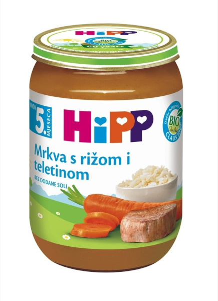 Bio kašica s korenčkom, rižem in teletino, od 5. meseca starosti, Hipp, 190 g