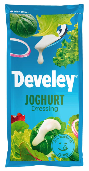 Voda, rastlinsko olje, 17% JOGURT z nizko vrednostjo maščob (1,5% maščob), alkoholni kis, sladkor, modificiran koruzni škrob, JAJČNI rumenjak, jedilna sol, začimbe (vsebuje GORČIČNA SEMENA, ZELENO), sredstvo za zgostitev: ksantan gumi, naravne arome.