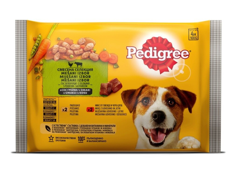 Hrana za pse Adult z divjačino, korenjem, piščancem in jagnjetino, Pedigree, 4x100 g