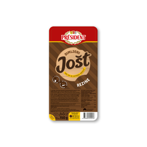 Sir Dimljeni Jošt, v rezinah, President, pakirano, 150 g