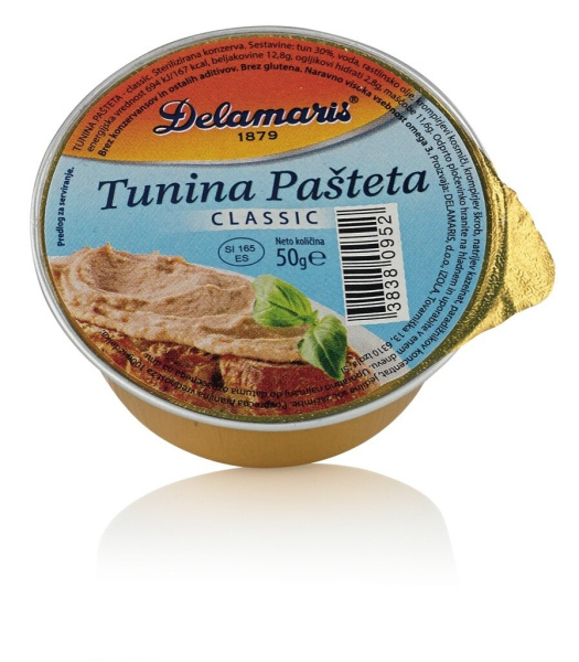 TUNA (Thunnus albacares) 30 %, voda, sončnično olje, krompirjevi kosmiči, MLEČNE beljakovine 3 %, krompirjev škrob, paradižnikov koncentrat, jedilna sol, začimbe.