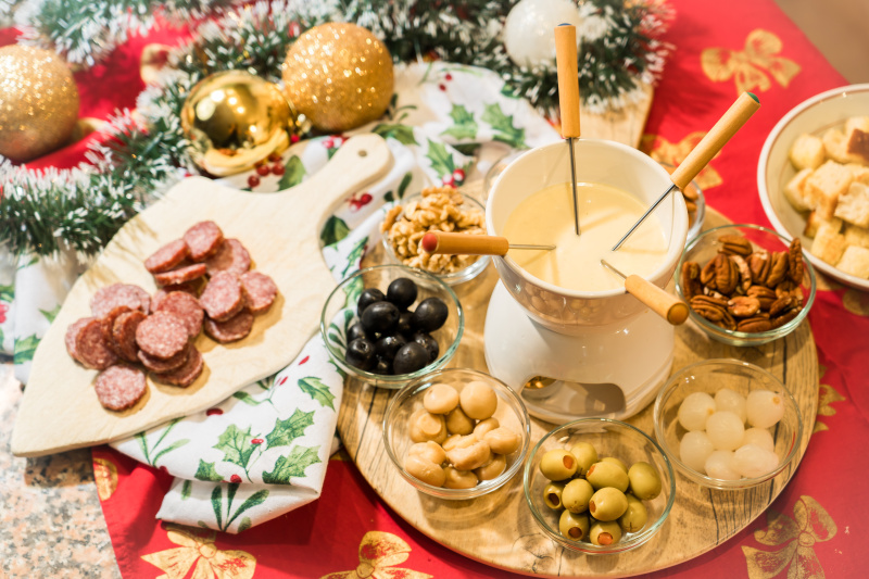 Najprej naribamo sir na debelo. Posodo za fondue dobro nadrgnjemo s česnom, nato vlijemo belo vino in ga segrejemo na srednjem ognju. Ko vino zavre, zmanjšamo temperaturo in postopoma dodajamo naribani sir, pri tem pa nenehno mešamo v osmicah. Ko se sir stopi, vmešamo koruzni škrob, ki smo ga pred tem raztopili v malo vina. Začinimo s poprom, muškatnim oreškom in začimbami. Fondue naj lepo brbota, a se ne prekuha. Fondue lahko kombinirate z opečenimi kruhki, orehovimi jedrci, kakimi suhimi mesninami, zraven pa za osvežitev odlično paše različna vložena zelenjava.